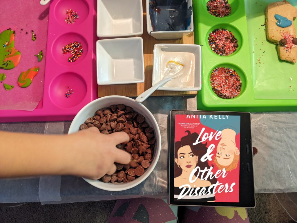 ✨ Making cutout cookies with my girls. My little one went to hide with this bowl of choc chips and I had no idea lol.